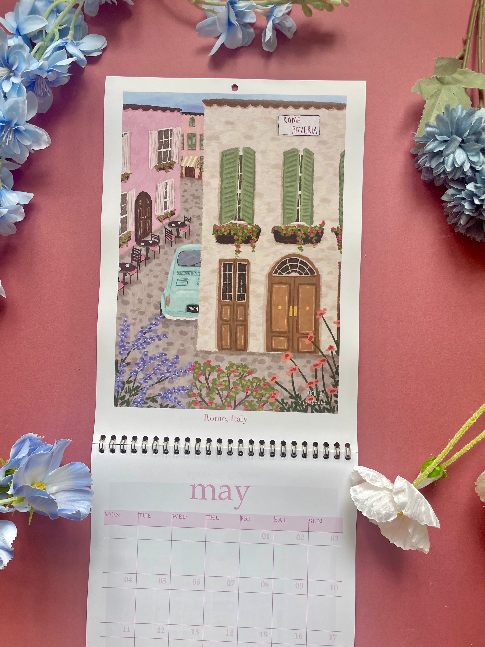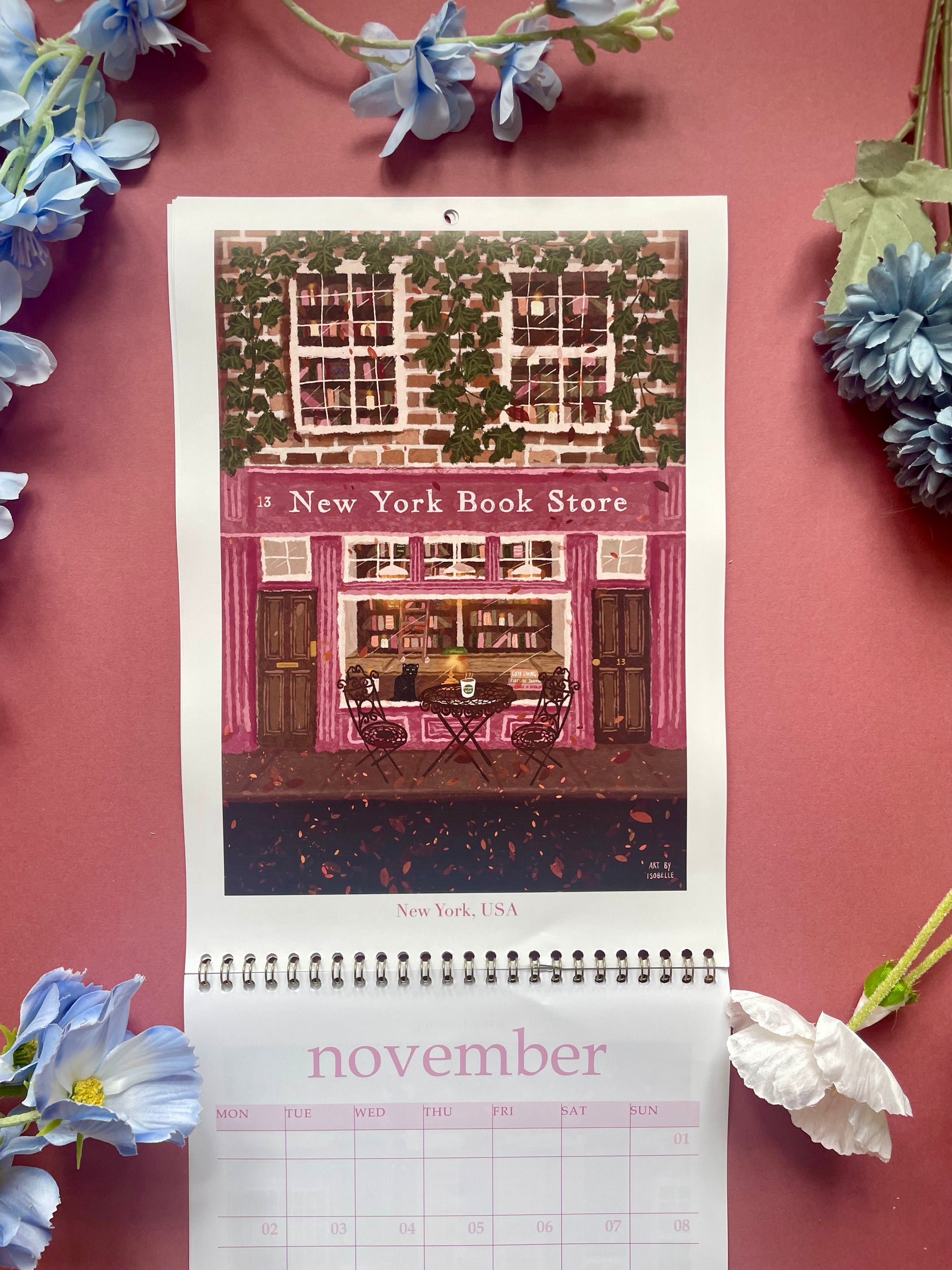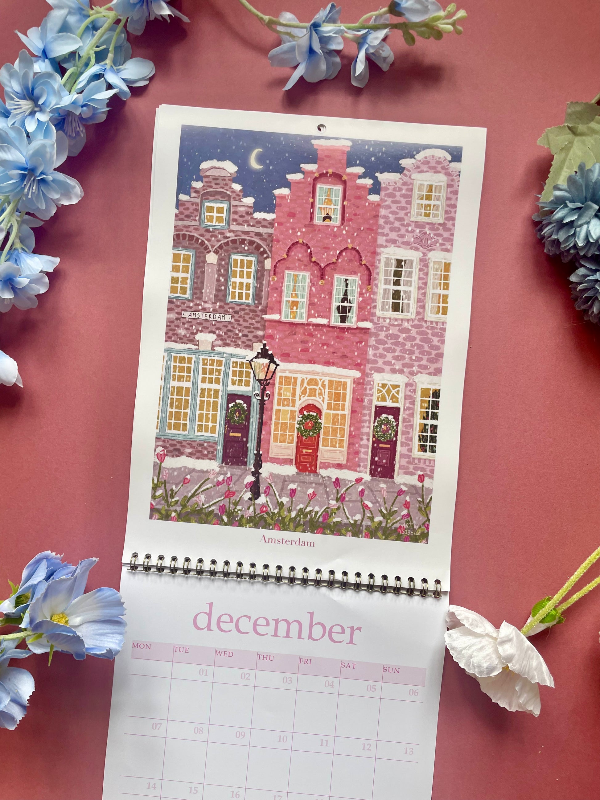 Bring the world to your wall in 2026. From the charm of a cosy New York bookshop to the fairytale streets of Castle Combe, golden Cotswolds cottages, the romance of Rome, and Amsterdam glowing with Christmas lights, every month transports you somewhere new.